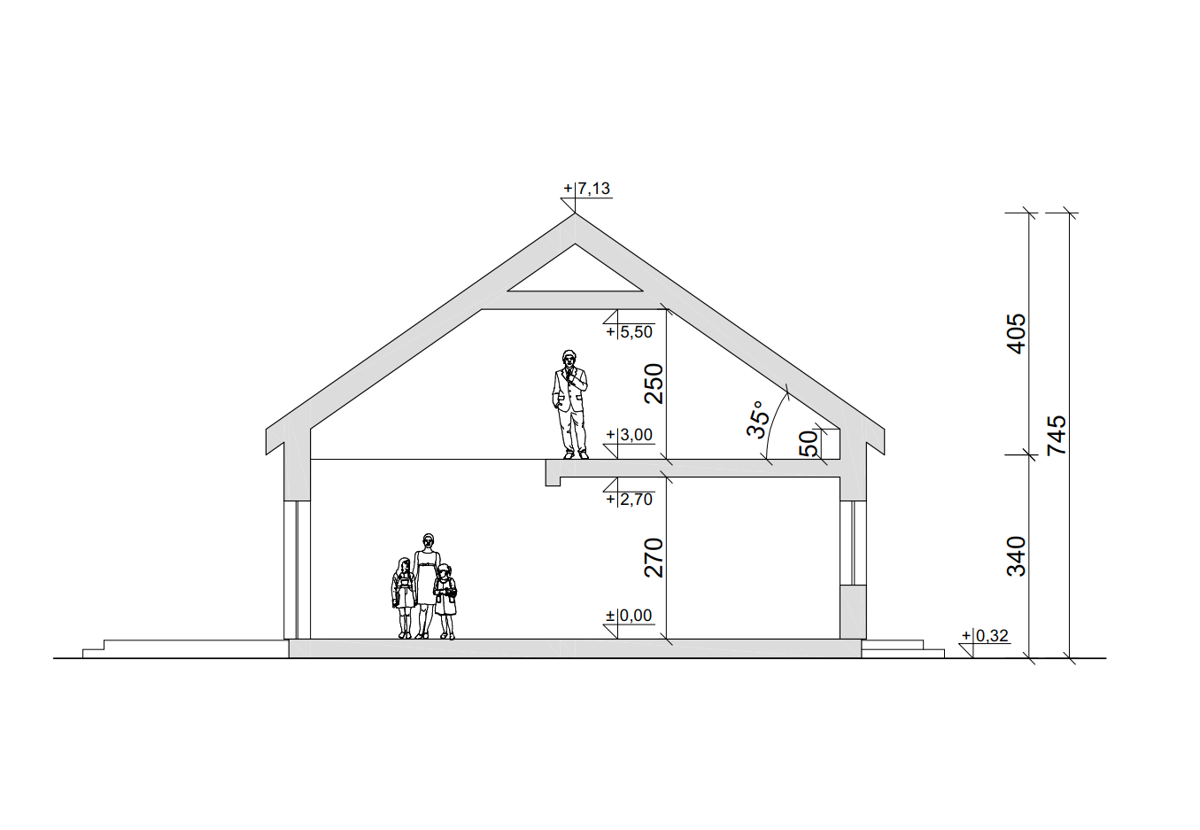 | Kąt nachylenia dachu: | 35 stopni |