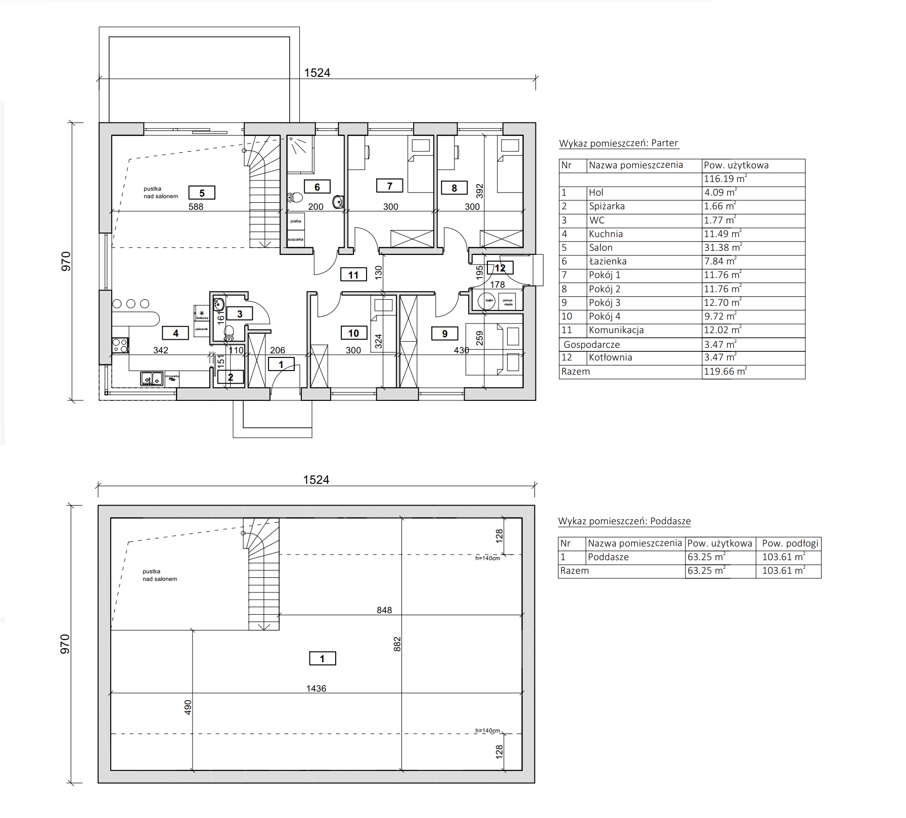 | Powierzchnia użytkowa: | 119,00 m2 (+ poddasze do aranżacji 64,00 m2) |