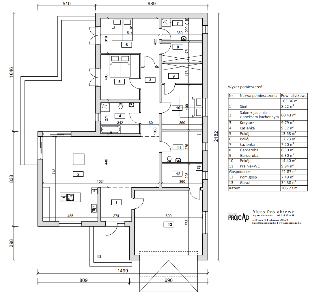 | Powierzchnia użytkowa: | 205,20 m2 (z garażem 2 stanowiskowym) |